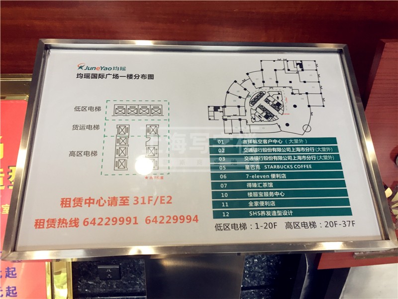 均瑶国际广场写字楼设有功能齐全得会所、商务及娱乐休闲中心,地上地下共设有260个泊车位。广场建筑风格,12米挑高的欧式大堂,尊贵气派。大楼1-5层为商业裙房,6-32层为办公区,物业配套设施齐全。着重引进了金融、信息、技术、咨询、外贸等专业机构;为各大企业提供了一个良好的商业平台,能够充分享有行业资讯交流的便捷,进一步提升产品升值空间。