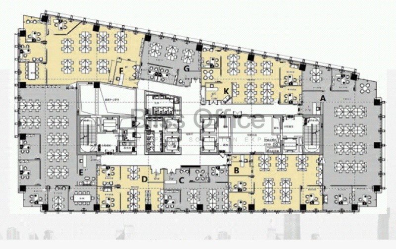 SOHO东海广场16人办公室带经理室,桌椅可按需求提供,定制办公