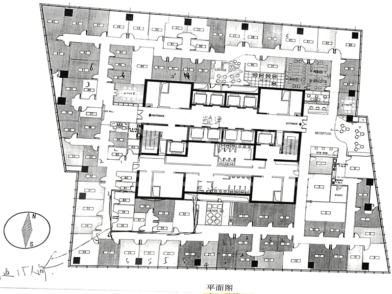 SOHO东海广场16人办公室带经理室,桌椅可按需求提供,定制办公