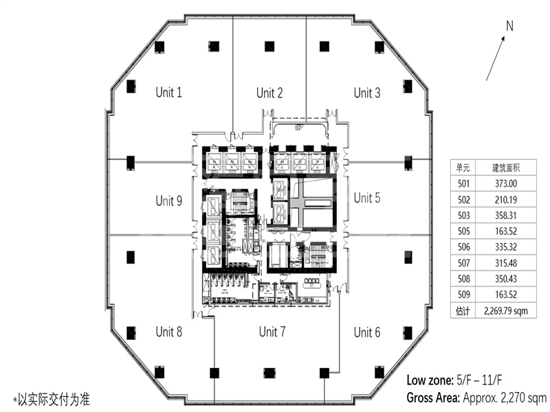 发 展 商:希慎兴业有限公司 总建筑面积:86,500 平方米 商业面积:18,000 平方米 办公楼面积:约50,000 平方米 标准层面积:1600-2200 平方米 大堂挑高:7.2 米 标准层高:4.10 米 交付标准:金属吸音吊顶、架高地板 架高地板:100 毫米 楼板承重:4.0千牛/平方米 电力供应:双回路供电,139伏安/平方米 空调品牌:意大利CLIMAVENETA品牌 空调情况:中央空调+新风系统;紫外线消毒及MERV13空气过滤系统 新风系统:新风量:30立方米/小时/人 通讯通信:中国电信、中国移动、中国联通 停 车 位:373个