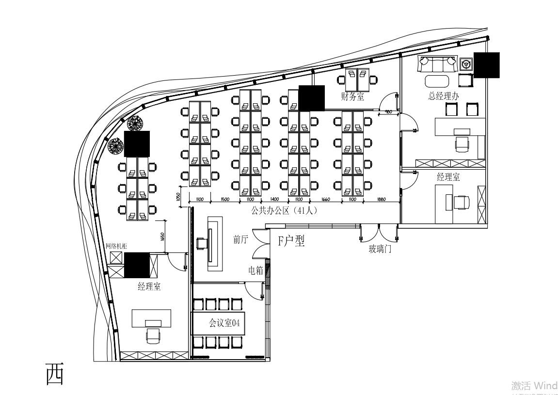 SOHO东海广场16人办公室带经理室,桌椅可按需求提供,定制办公