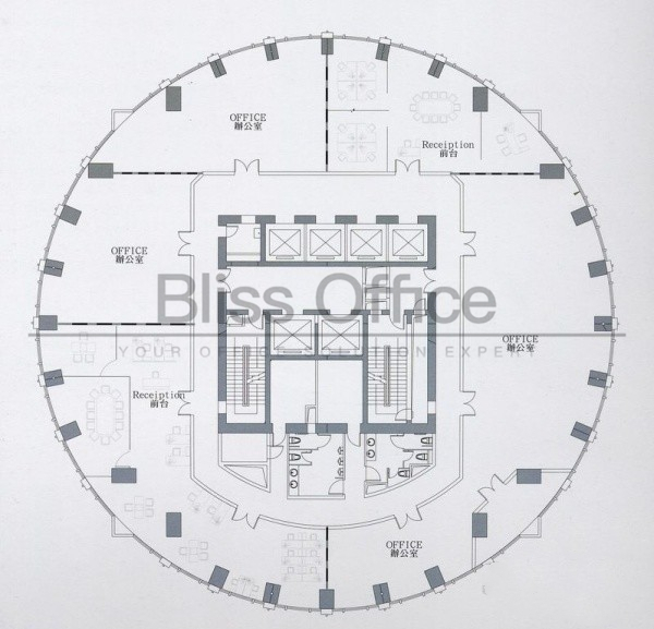 SOHO东海广场16人办公室带经理室,桌椅可按需求提供,定制办公