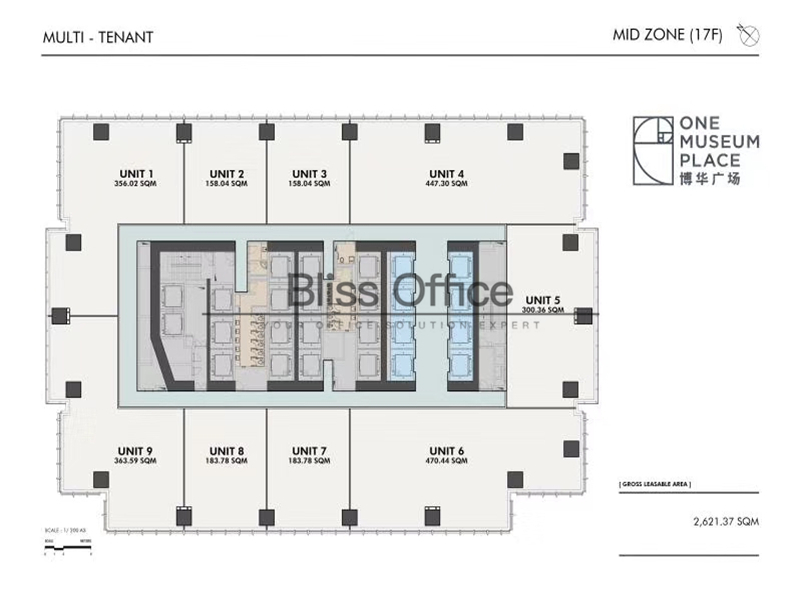 SOHO东海广场16人办公室带经理室,桌椅可按需求提供,定制办公