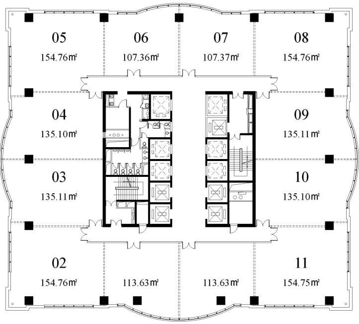 世界贸易大厦正对电梯口户型,600平高区景观